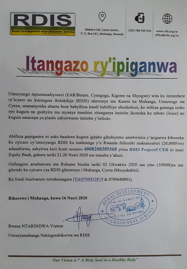 Recently, RDIS has distributed food items, soaps and fliers for the alleviation of the impact of Covid-19 pandemic in the southern and western provinces of Rwanda